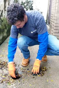 | Eric Fleishman, Night Maintenance PDOP, clears a drain as part of the Rainy Day Checklist |